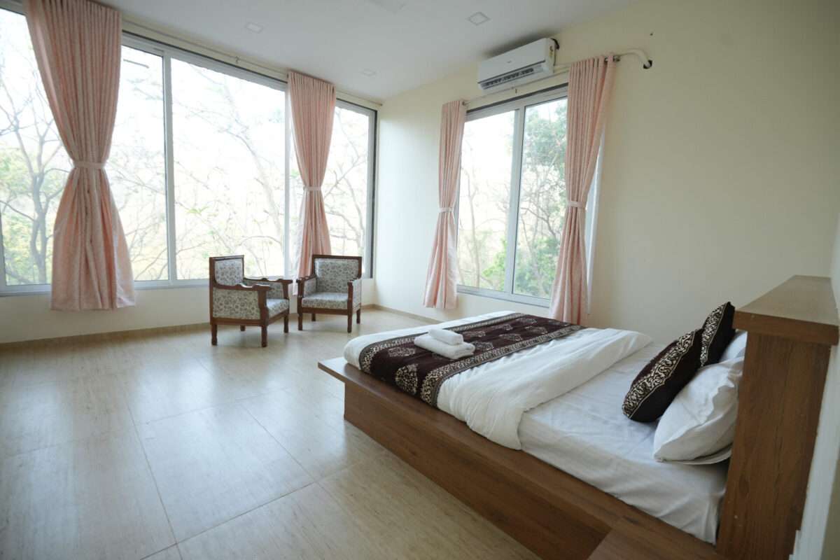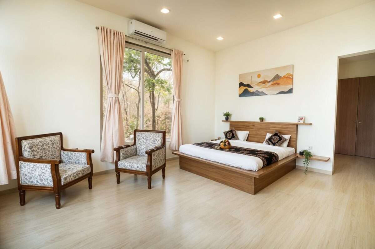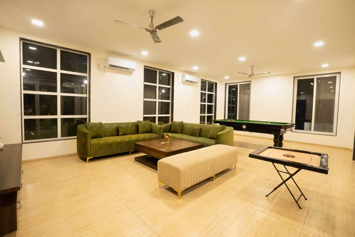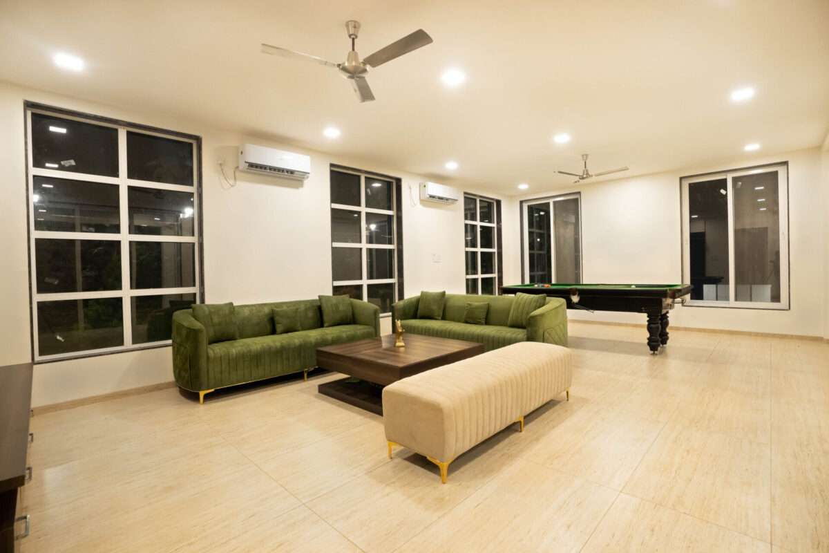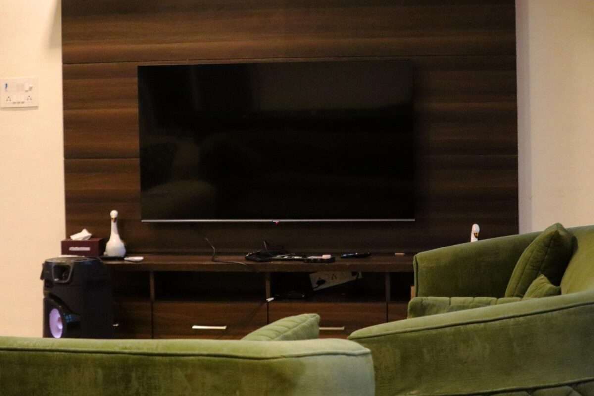 Relax in the cozy living room with aesthetic sofas and a stylish TV unit or engage in fun games with the game console provided. Each room is air- conditioned ensuring a comfortable stay regardless of the weather.