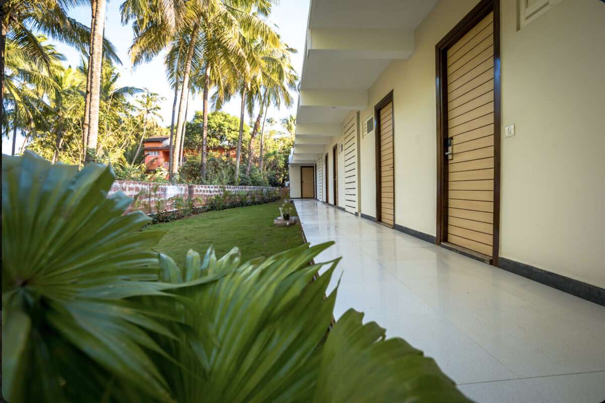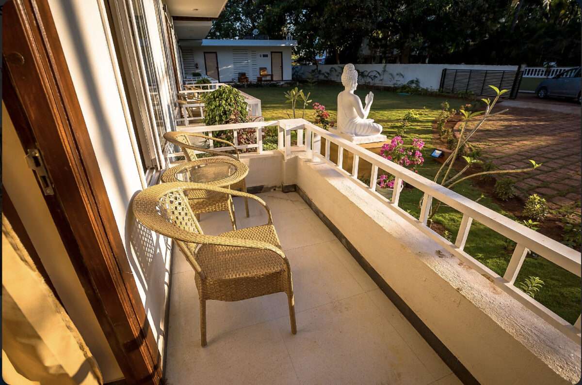 This premium property is located on Morjim Beach Road in Morjim, Goa. Moreover, it is just a few minutes away from Morjhim Beach, Mandrem Beach and Chapora Fort.It is easily accessible from Thivim Railway Station.Travellers are fond of this property for its proximity to the beach.