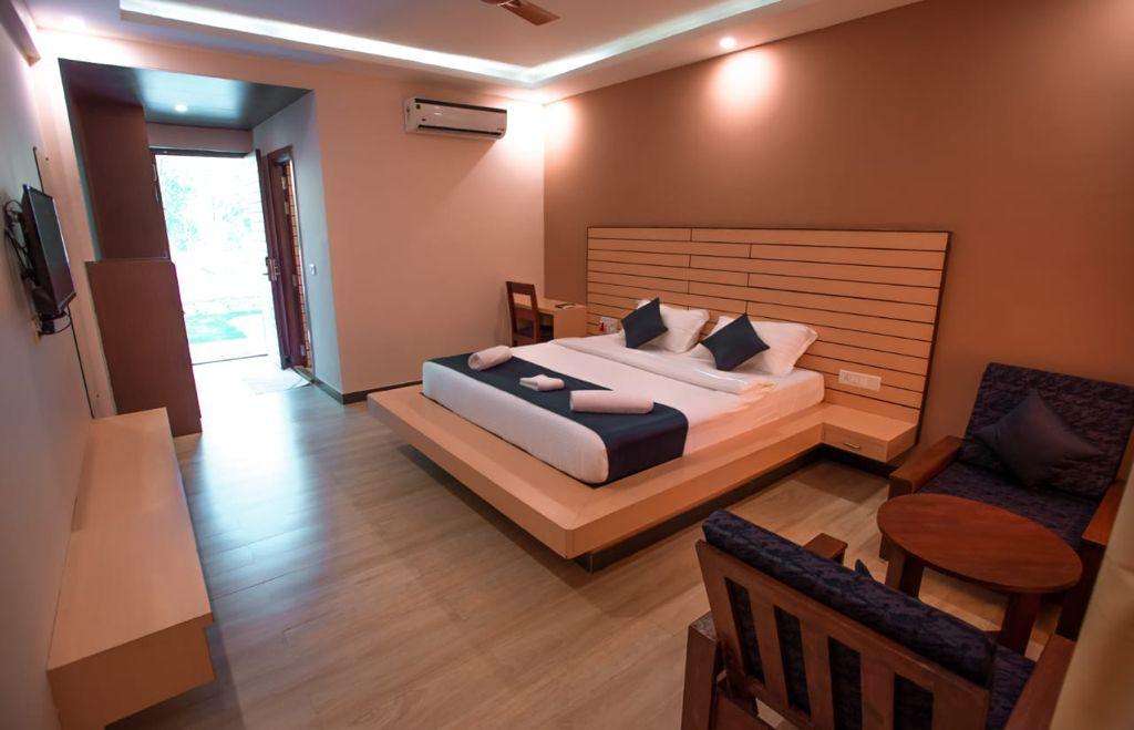 • The Deluxe Room is spread across an area of 468 sq. ft and offers one sumptuous king bed with a spacious living room area and a private balcony to enjoy the swimming pool or garden views.