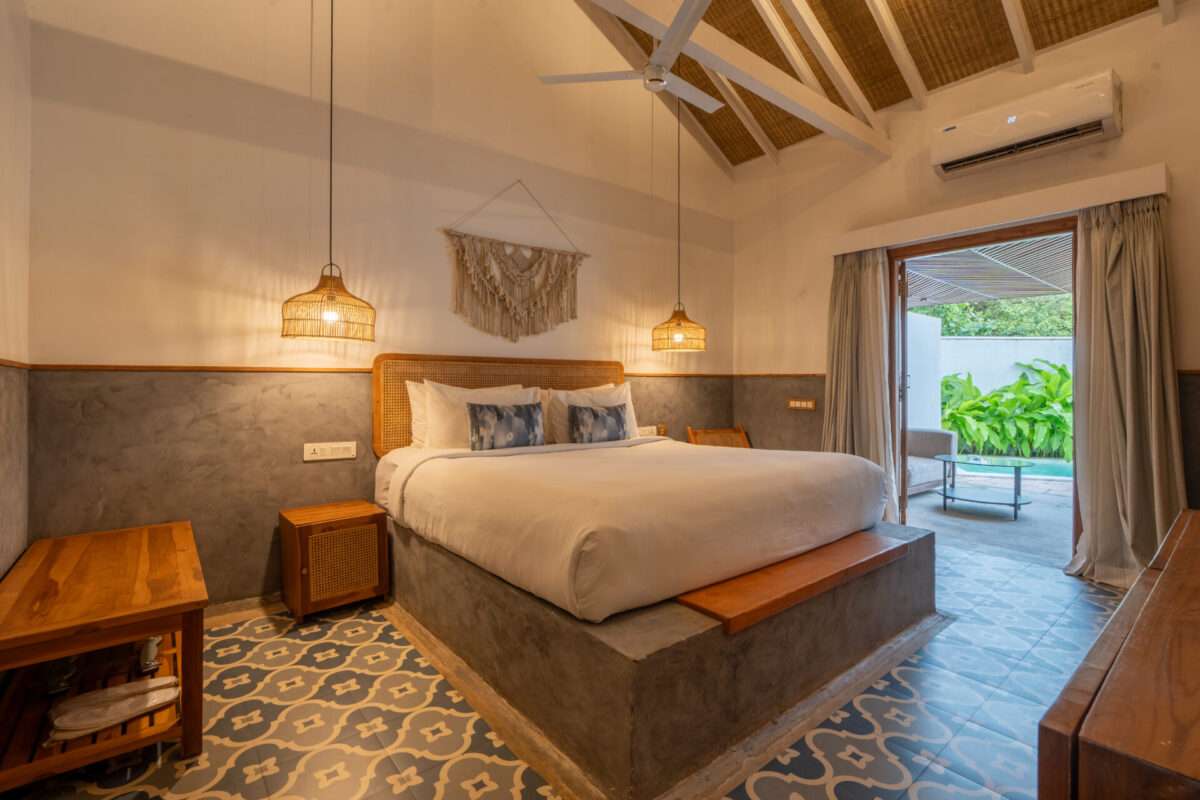 Bubbles Villa in Morjim offers a 4-star hotel experience with a lush garden, a year-round outdoor swimming pool, and free WiFi. Guests enjoy private check-in and check-out services, a 24-hour front desk, and a concierge.
