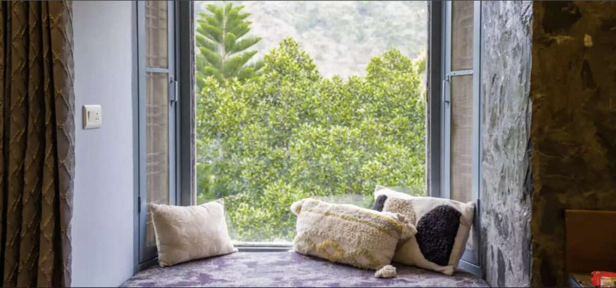 Spread across 1.2 acres of serene land, this elegantly designed cottage boasts exquisite window seating with vistas for immersing in nature’s beauty. Relish a hearty meal at the restaurant, enjoy a quiet tea break, or indulge in freshly baked pizza, all while soaking in the views.