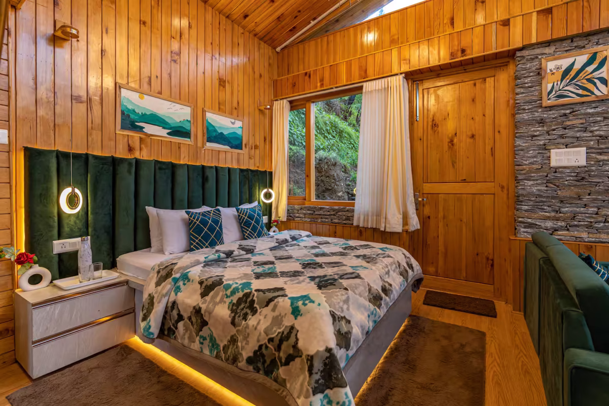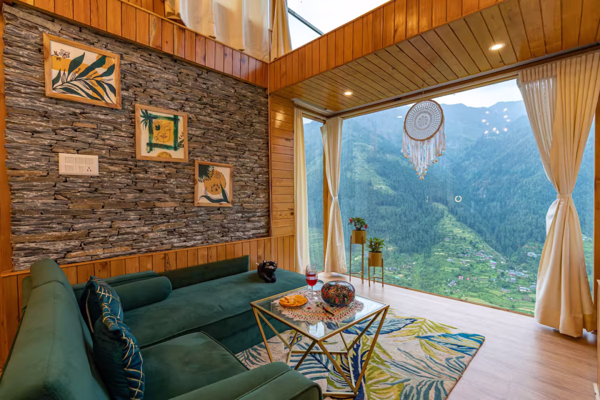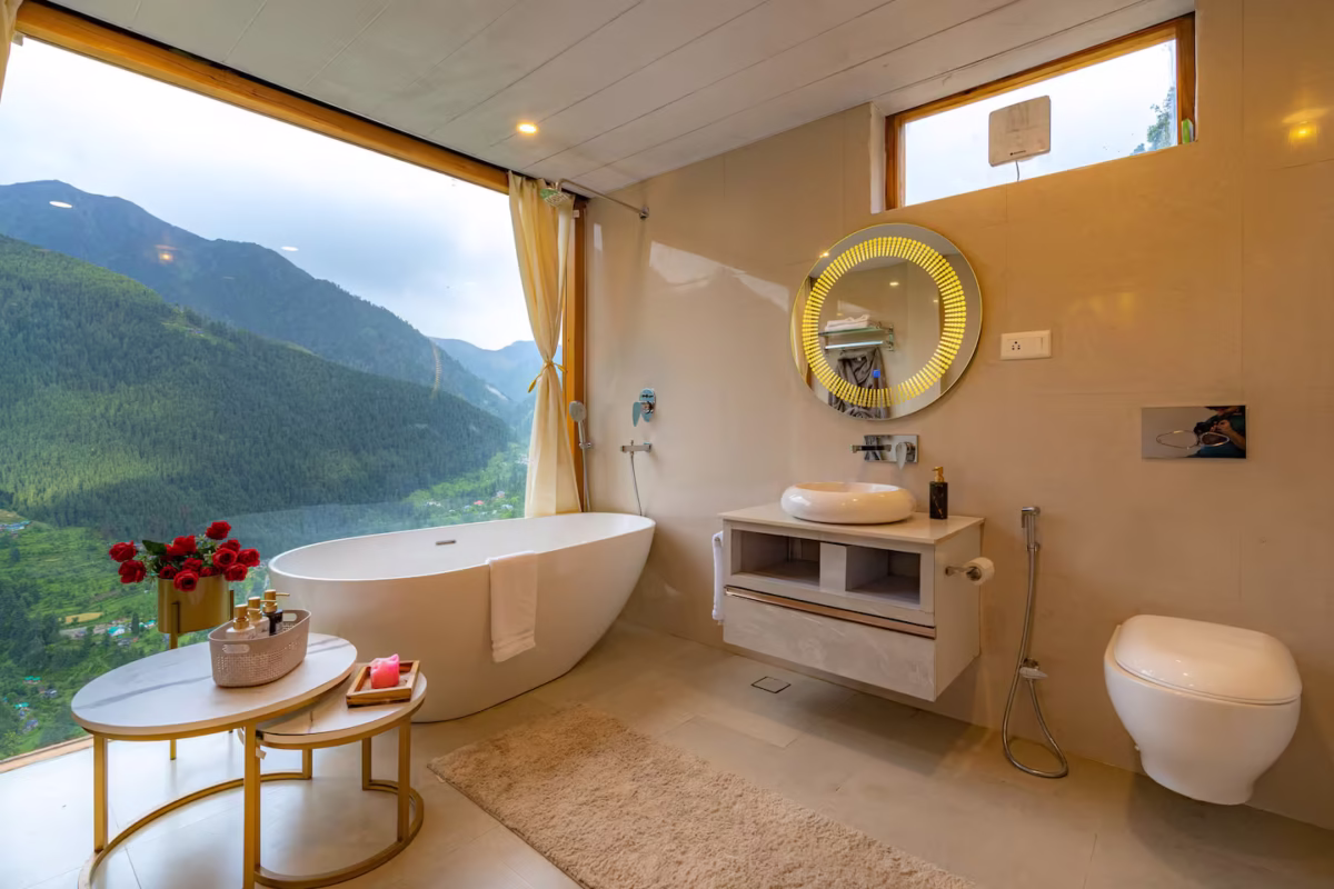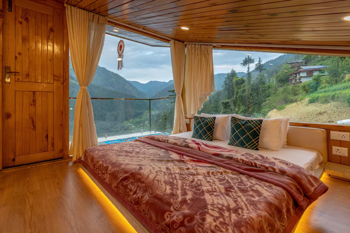 Experience the perfect blend of nature and opulence, perched atop Tandi hill near Jibhi. Delight in a luxurious soak in a hot bubble bath while relishing breathtaking views directly from your bathtub. Nestled away from road and traffic noise, the only sounds you’ll encounter are the melodic chirping of birds. With an all-glass cabin, you might even spot a flying squirrel or catch a glimpse of a shooting star in serene night sky. Unwind and enjoy the tranquility of this chic, peaceful retreat.