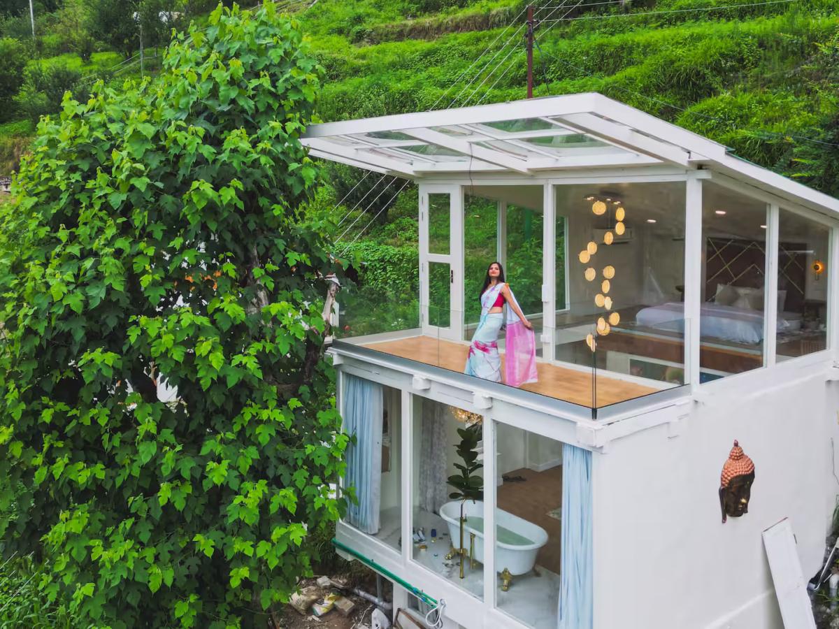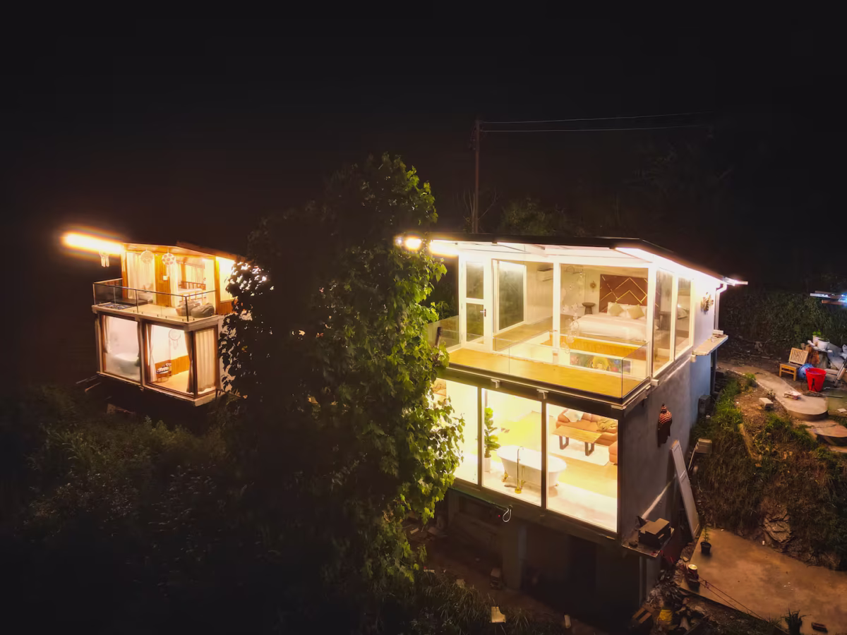 Experience the perfect blend of nature and opulence, perched atop Tandi hill near Jibhi. Delight in a luxurious soak in a hot bubble bath while relishing breathtaking views directly from your bathtub. Nestled away from road and traffic noise, the only sounds you’ll encounter are the melodic chirping of birds. With an all-glass cabin, you might even spot a flying squirrel or catch a glimpse of a shooting star in serene night sky. Unwind and enjoy the tranquility of this chic, peaceful retreat.